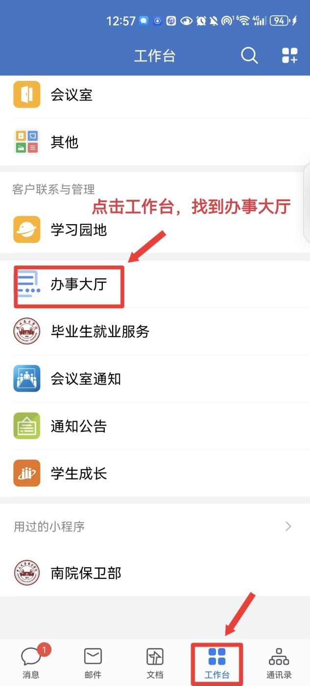 打开企业微信→点击工作台→点击办事大厅→点击学生证补办、换发申请→填写相关信息提交→等待申请通过后,携带本人一寸红底或者蓝底证件照到院系办公室办理即可