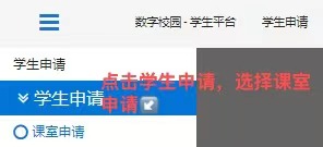 打开WilliamHill中文数字校园→点击功能选择→点击学生申请→选择课室申请→填写课室申请表→在个人工作台中的已办查看结果