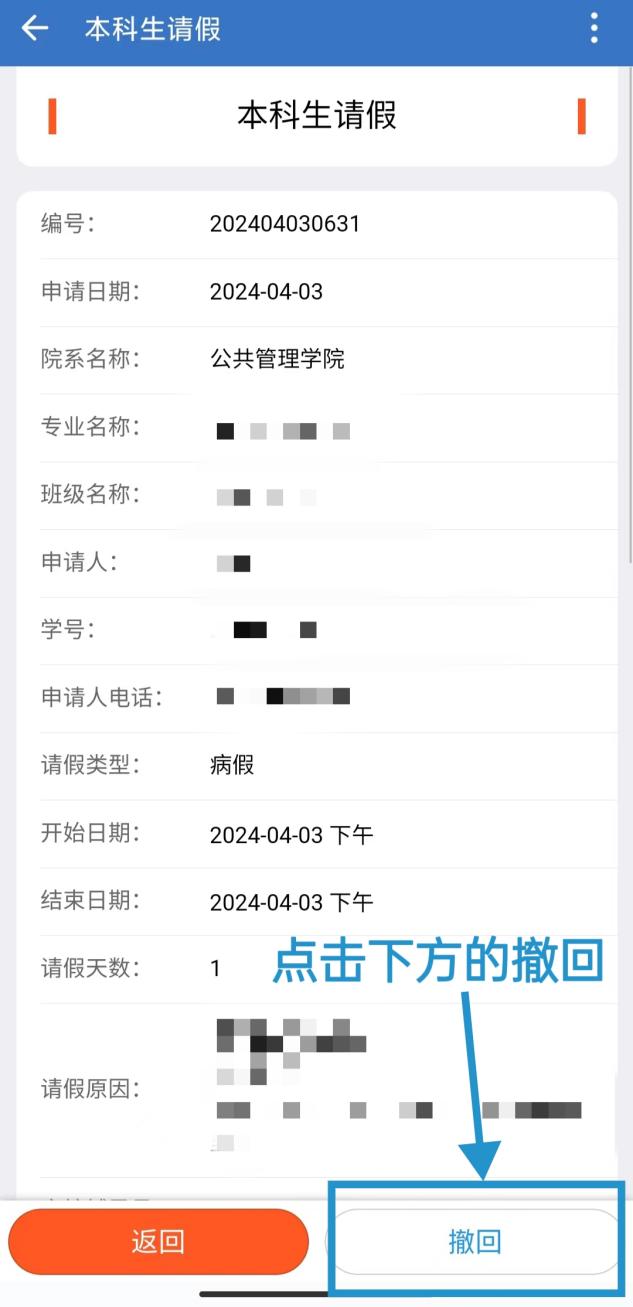撤回请假流程