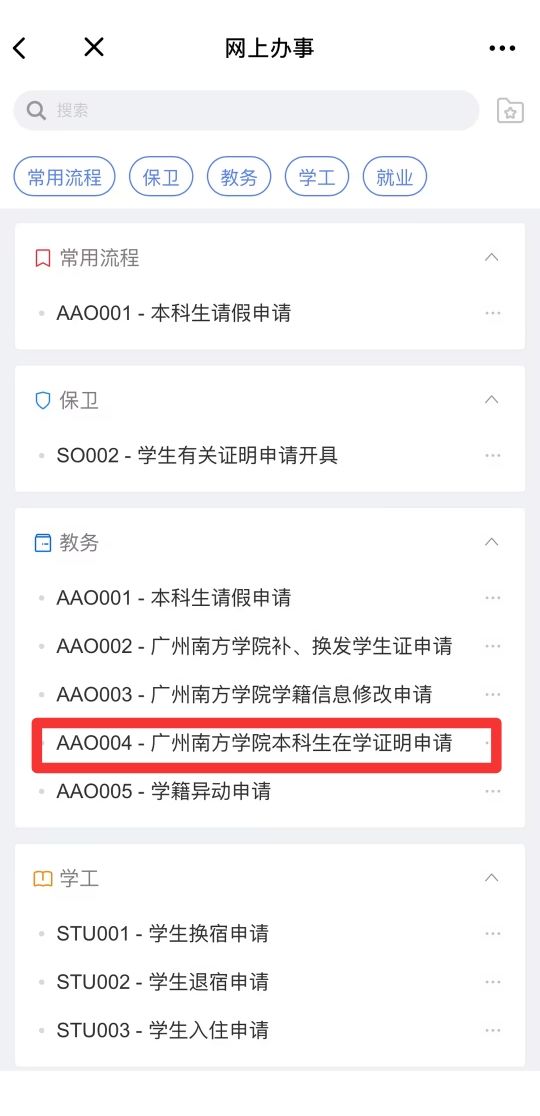打开企业微信→点击工作台→点击办事大厅(学生)→点击新建流程→选择WilliamHill中文本科生在学证明申请→填写相关信息即可(办理其他事项流程同理)