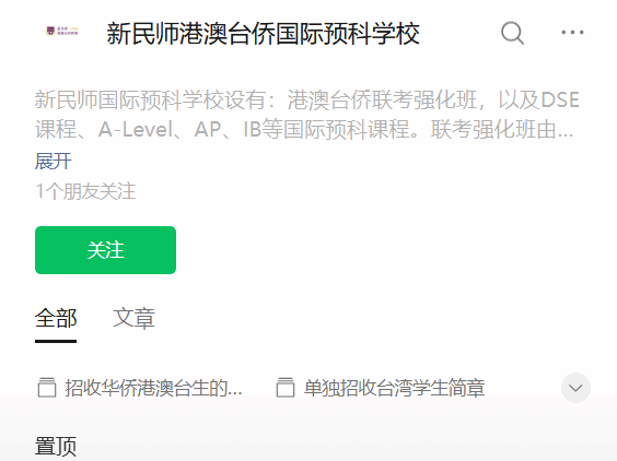 新民师港澳台侨国际预科学校(中心)系新民师教育集团所属学校,旨在为广大在粤港澳大湾区工作、生活的港澳台侨人士子女提供优质的教育资源。学校矢志不渝地追求“培养素质全面、学业卓越,具备创新思维、独立人格、国际视野及热爱祖国情怀的优秀人才”的教育目标。