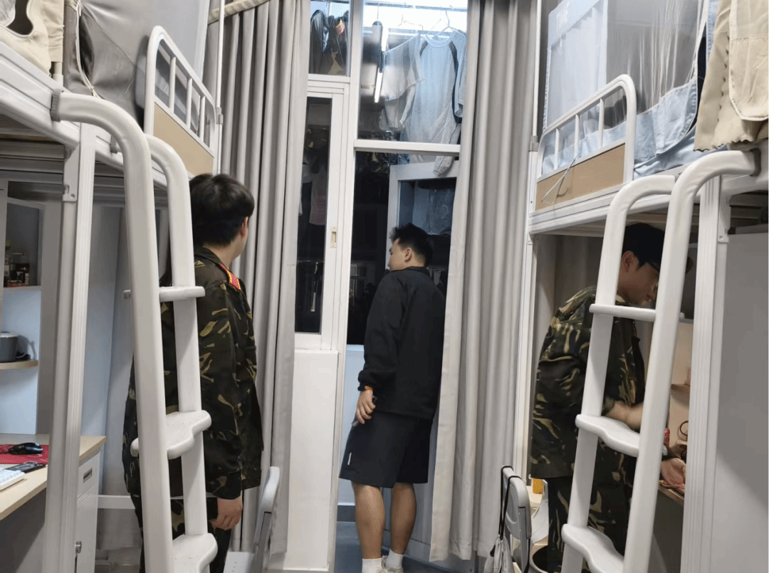 军训的磨砺,从不只在训练场,更藏在日常生活的方寸之间。规范内务、整理宿舍,是军训的重要组成部分,更是同学们养成严谨作风、自律习惯的必经之路。晚间,学院武装专员莫顺政、25级新生辅导员赖瑞琦分别前往新生宿舍,细致开展内务检查工作。