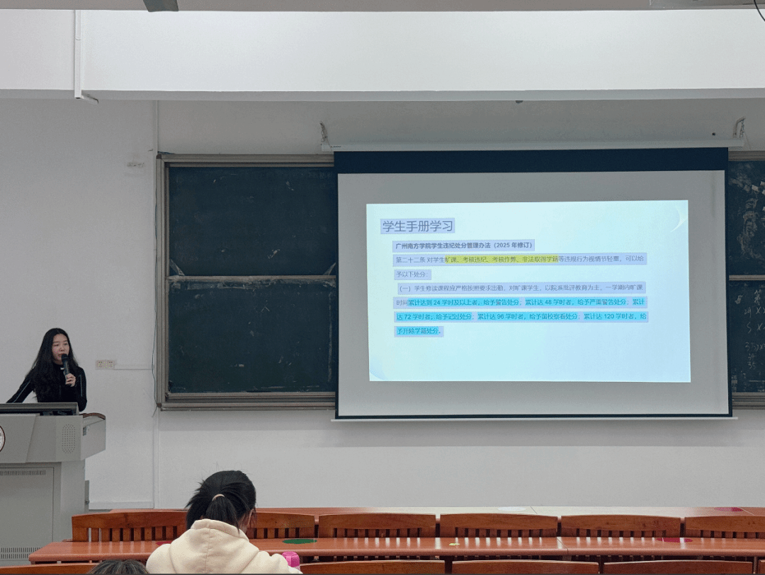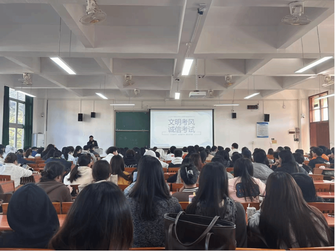 我院组织全体辅导员通过线上线下相结合的方式,深入开展考风考纪与诚信教育。学院老师面向全体学生组织召开了“迎接期末,诚信考试”主题班会。班会内容聚焦考风考纪要求与诚信应考的价值意义,通过结合违纪处分案例进行详细讲解,使学生清晰认识违规后果,牢固树立“以诚信应考为底线”的备考观念。同时,引导学生结合学科特点梳理复习重点,鼓励组建互助学习小组、共享高效复习方法,并温馨提醒同学们合理规划作息、避免熬夜,以饱满的精神状态投入复习。班会现场氛围专注热烈,有效强化了考纪意识,传递了互助备考的温暖,营造出“诚信应考、积极备考”的良好学风。