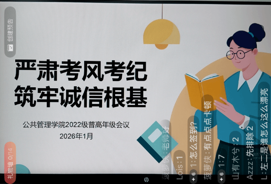 此外,2022级辅导员姚凡、宣伟男等老师创新形式,通过视频号直播开展了“严肃考风考纪,筑牢诚信根基”线上主题班会,进一步拓展了教育覆盖面,增强了互动性和影响力。