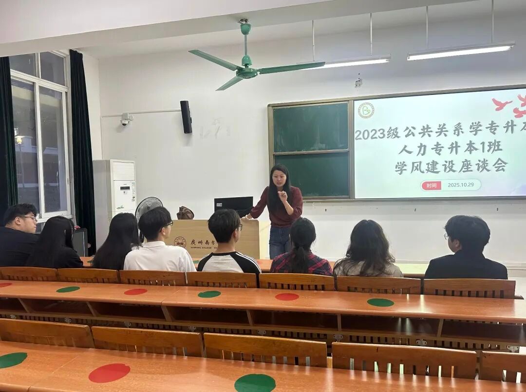 10月29日下午,2023级公共关系学专升本、人力资源管理专升本1班在7教104开展学风建设座谈会。辅导员叶晓燕老师,各班班长、副班长以及团支书共同出席。