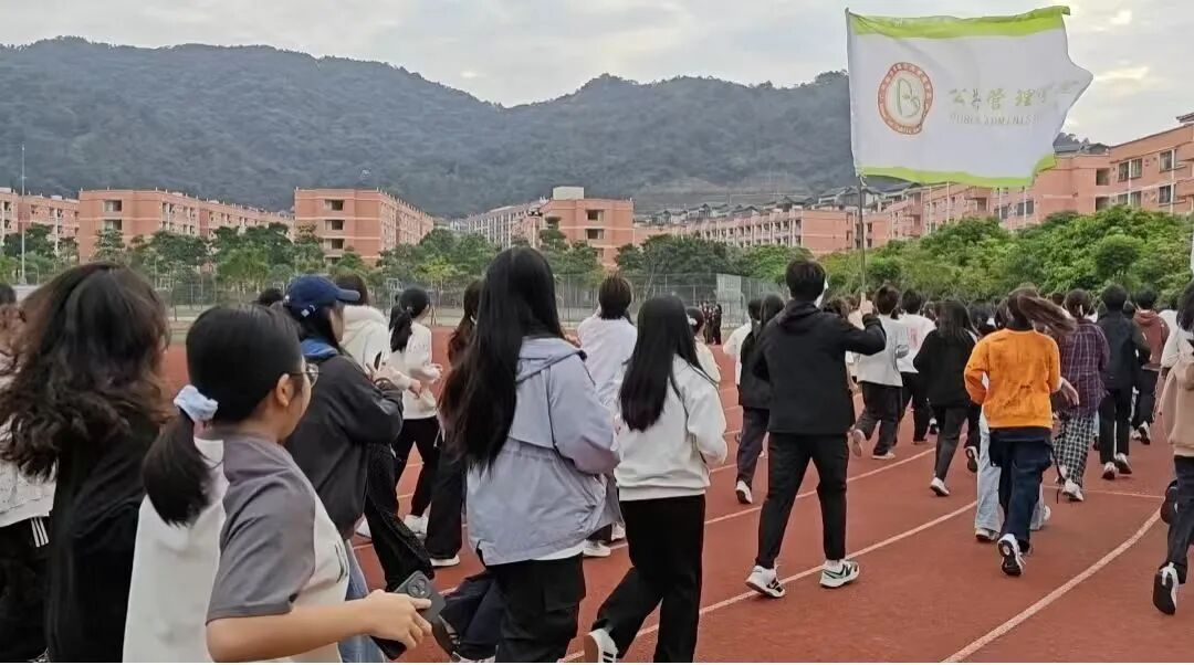 启动仪式后,师生们在朋辈辅导员的带领下有序集结,开展了简单有效的热身运动。大家跟着指导充分活动关节、拉伸肌肉,为后续晨跑做好充足准备。随着开跑指令发出,大家一同迈开脚步,沿着东区操场跑道开启晨跑。跑步过程中,大家相互陪伴、节奏有序,脸上洋溢着朝气与活力,充分展现了公管学子积极向上的精神风貌。朋辈辅导员们分散在队伍前后,时刻关注同学们的状态,不时提醒大家调整呼吸、注意安全;新生们相互鼓励、并肩前行,陌生感在脚步呼应中逐渐消散,默契悄然滋生。整个晨跑过程秩序井然,欢声笑语与轻快的脚步声交织,为静谧的校园清晨增添了满满的生机。
