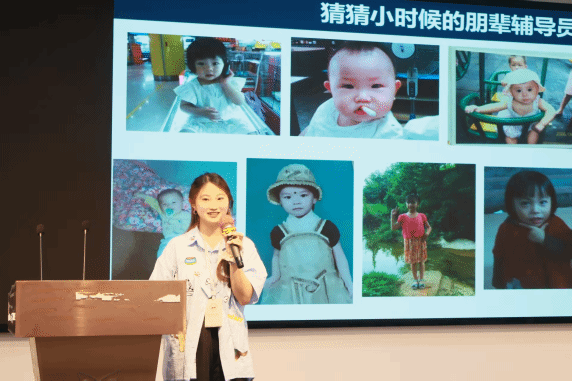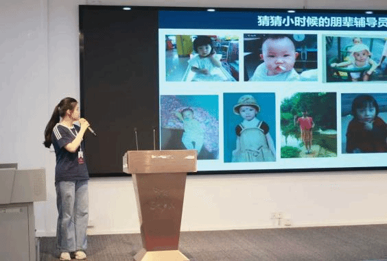 随着赖老师分享的结束,活动进入朋辈辅导员互动环节,现场氛围瞬间变得轻松热烈。朋辈辅导员们别出心裁,以趣味小游戏“猜猜小时候的朋辈辅导员”拉开自我介绍的序幕——屏幕上依次展示各位朋辈辅导员的童年照片,新生们举手猜测,在欢声笑语中快速拉近了彼此的距离。随后,每位朋辈辅导员结合自身经历,详细分享了专业学习心得、大学生活规划技巧,以及社团活动、社会实践等方面的经验;更精心准备了专属新生寄语,用同辈视角传递温暖与鼓励,让新生们深切感受到来自“学长学姐”的亲切支持,也对未来的大学生活充满了期待。