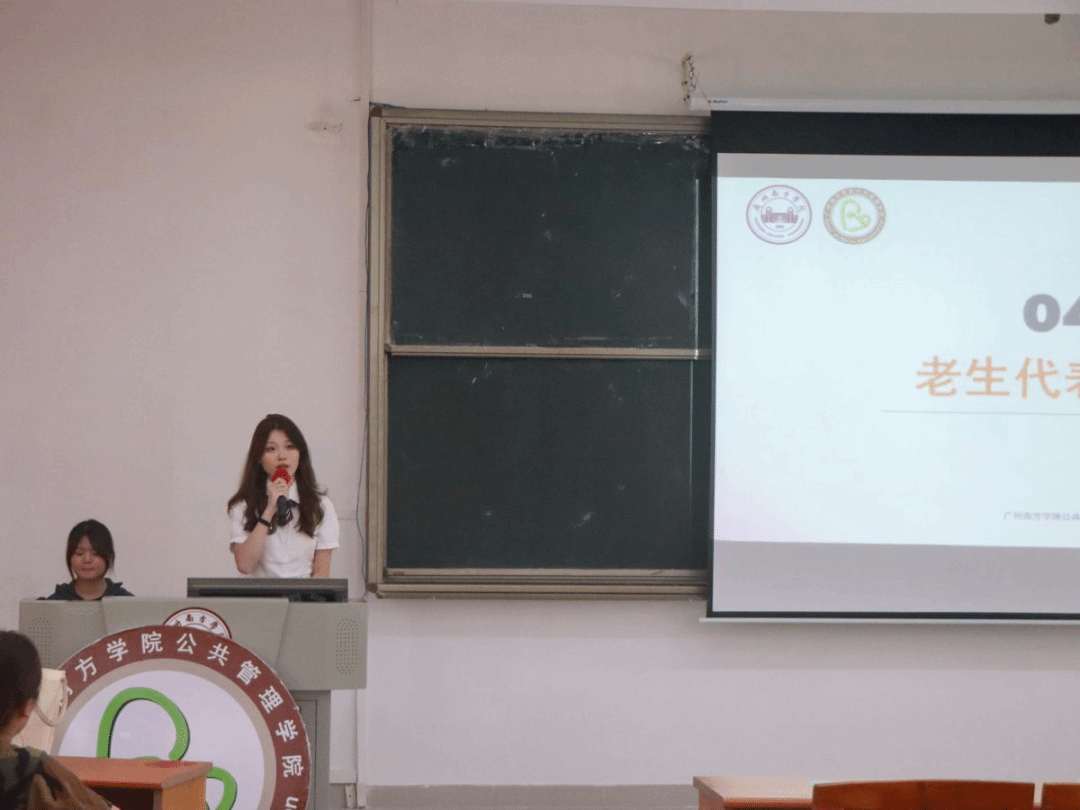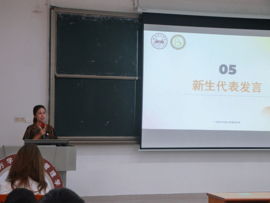 2025级辅导员赖瑞琦老师在讲话中强调大学四年是人生重要成长阶段,鼓励新生充分利用学术资源与师长指导,在知识学习中夯实专业基础,在社会实践中锻炼综合能力,明确自身方向,在突破中收获自信。