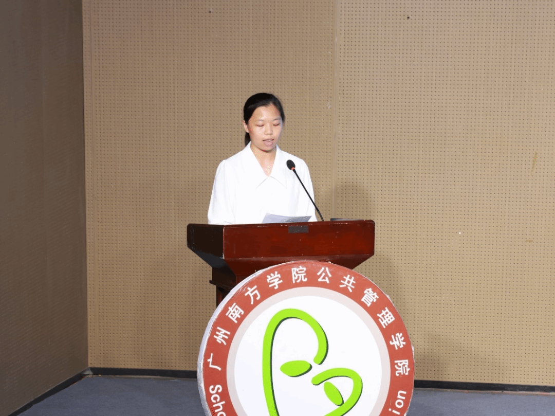 来自23级行政管理专升本一班新生代表张文浩同学以 “坚持” 为题,分享了自己的专升本历程,她在专科阶段付出了无数的努力和汗水,换来了踏入南院的机会。作为班长,她希望自己能作为班级的纽带,以积极状态带动班级风气,营造良好的集体氛围,并做好师生衔接,助力教学顺畅开展。张同学提出,大家重返校园,不仅为提升个人能力,更要把课堂上学到的技能,投入到为人民办实事、为国家发展作贡献的实践中,让青春在党和国家的事业中绽放光彩。