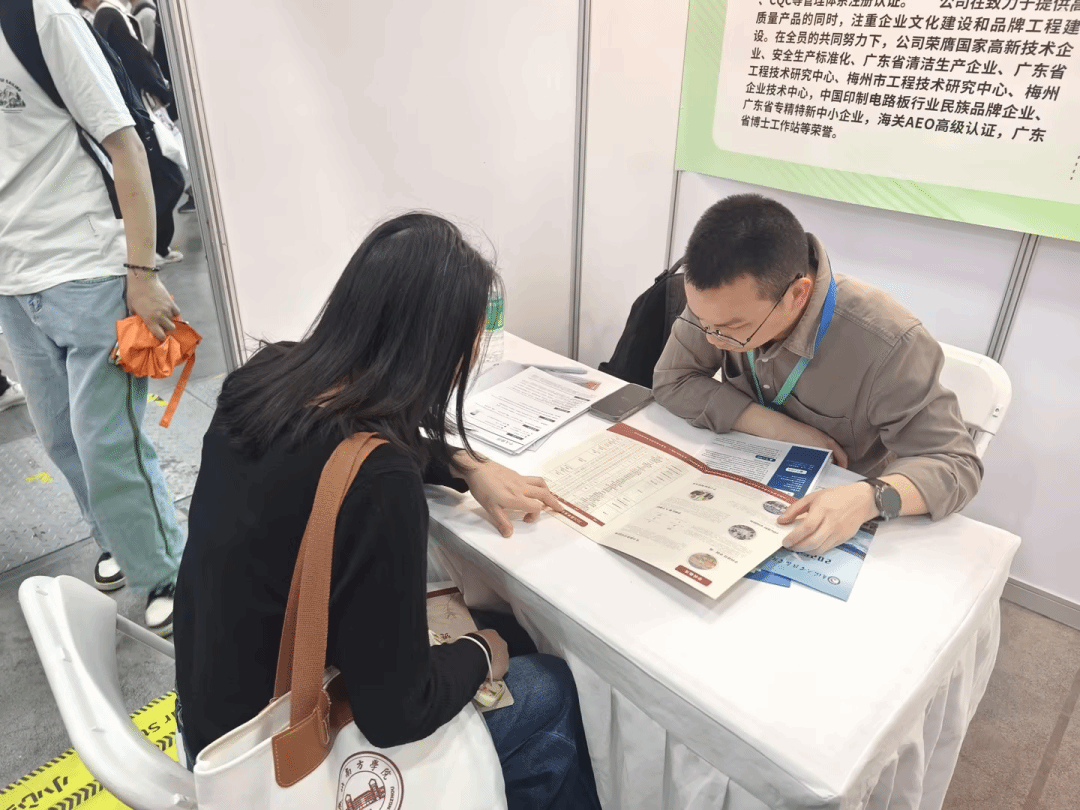王煦、叶晓燕两位毕业班辅导员全程驻场,主动走访名创优品、广东南海控股集团、钛动科技、广州研趣信息科技股份有限公司、广州万居隆科技有限公司等十余家优质企业展位,覆盖制造、科技、传媒、电商、公用事业等多个重点行业,全方位推介我院办学成果、人才培养特色及毕业生核心优势,积极拓展优质就业资源。累计收集行政储备干部、人力资源管培生、新媒体运营、国际营销管培生、猎头顾问等多类适配岗位信息,岗位需求与我院专业培养方向高度契合,为毕业生提供了丰富且优质的求职选择。