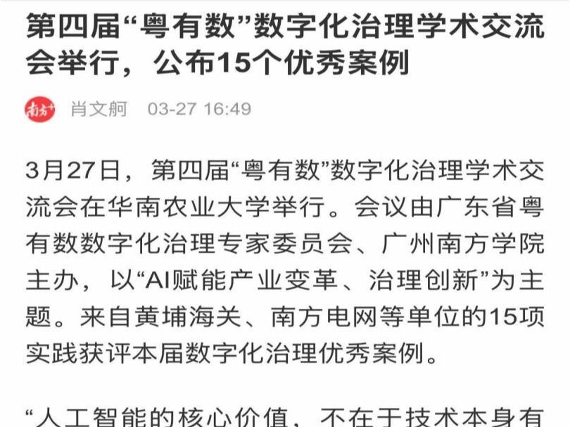 【编者按】2026年3月27日上午,以“AI赋能产业变革、治理创新”为主题的第四届“粤有数”数字化治理交流会在华南农业大学举行。本次活动现场揭晓了15个第四届“粤有数”数字化治理优秀案例,中国科学院院士、WilliamHill中文校长汤涛和省有关部门领导共同为“广东社会调查基地”揭牌,同步举行了“粤有数AI赋能产业发展平台”成立仪式。原国家信息化专家咨询委员会常务副主任周宏仁为本次活动发来书面寄语,教育部长江学者特聘教授、中山大学社会科学学部主任肖滨、...