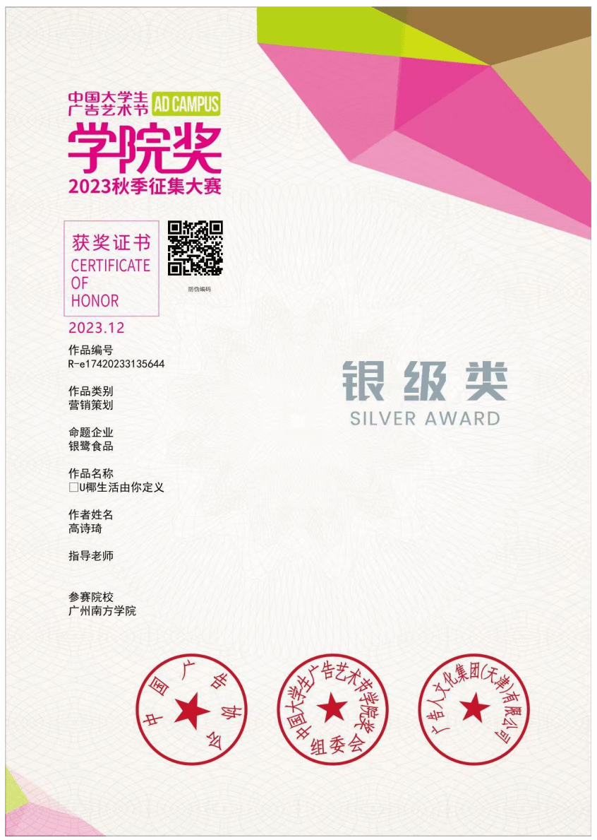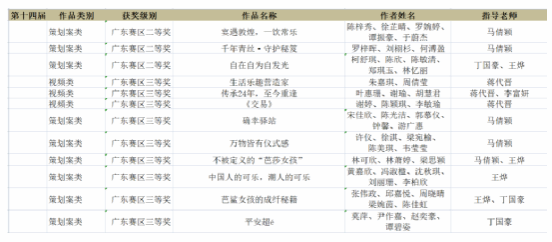 第十四届全国大学生广告艺术大赛我院获奖名单