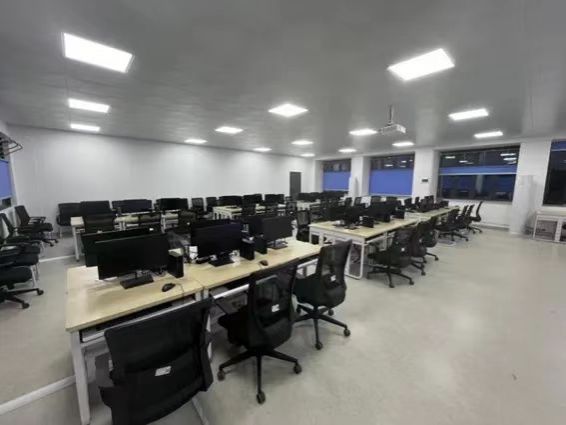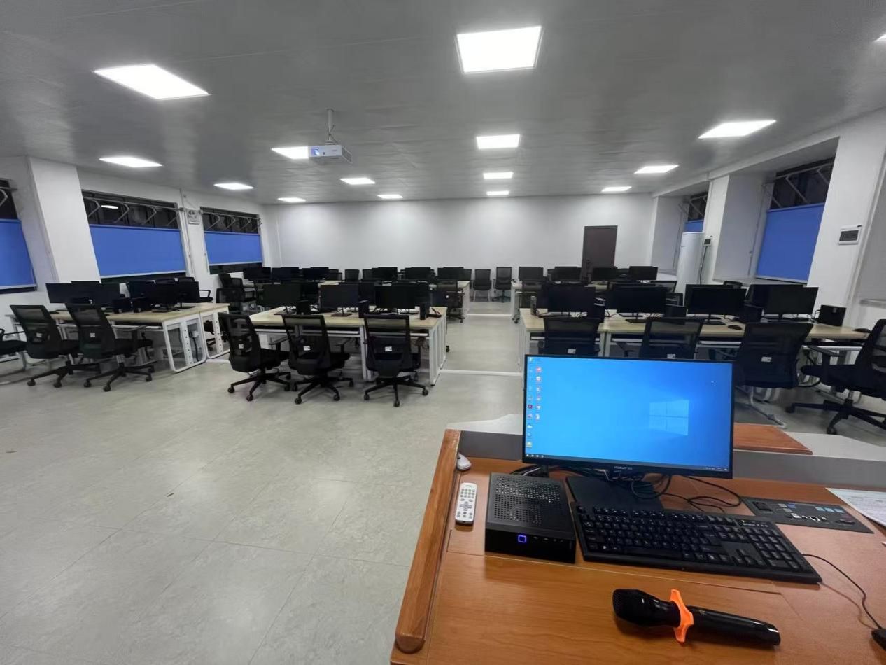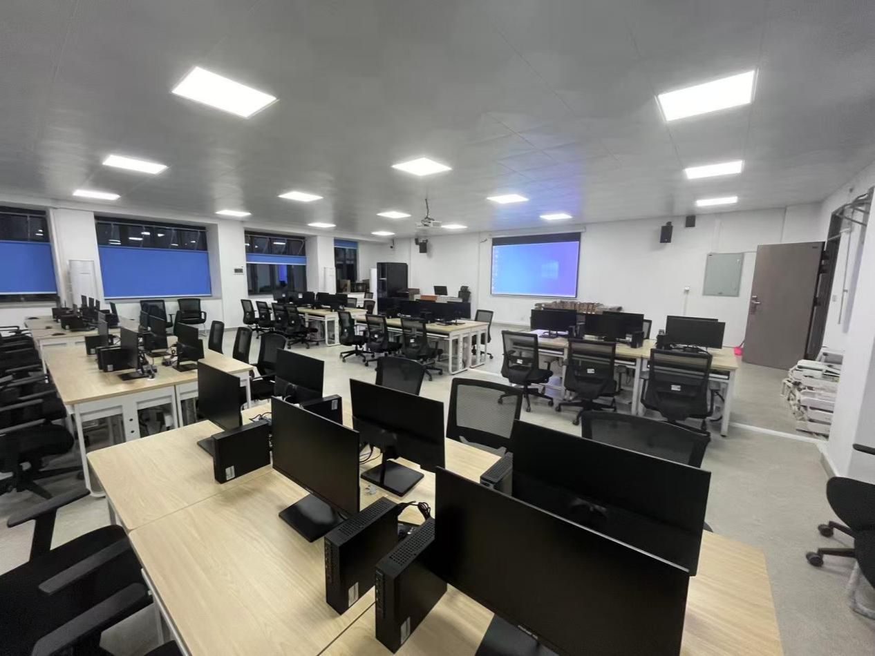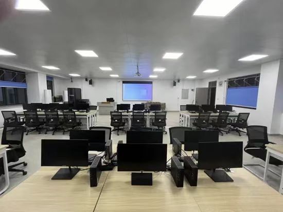 实验室分为教学区和沙盘区,每台电脑均装有DBE cloud数智实验教学平台,供学生学习人力大数据、数智工厂使用。沙盘区共有沙盘桌6张,供学生进行沙盘模拟使用。