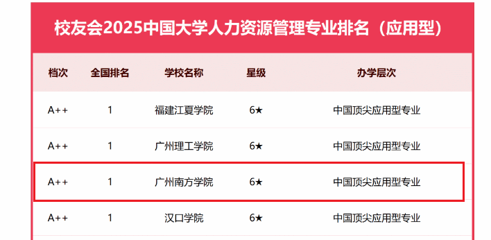 目前,我校人力资源管理专业已连续七年荣获艾瑞深校友会网榜单的六星级中国顶尖应用型专业的称号,并在同类型院校中排名第一。